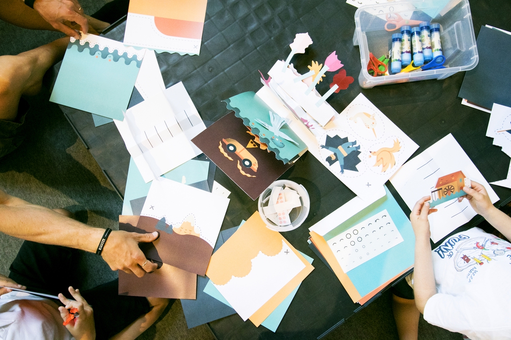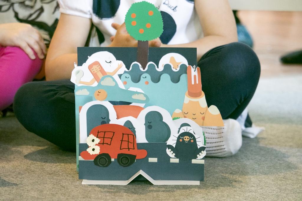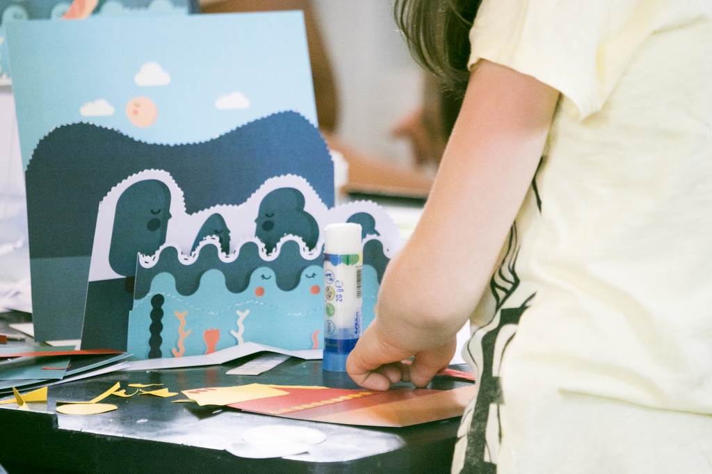 I laboratori, condotti dall’illustratrice del libro Chiara Morra con la collaborazione di Laura Tanghetti, esperta operatrice in progetti creativi e insegnante di comunicazione visiva, e degli educatori di MUBA, coinvolgono i bambini in un gioco visivo e di composizione.